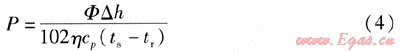 有壓熱水鍋爐供熱系統(tǒng)循環(huán)泵質(zhì)量流量qm的計(jì)算式為: