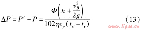 式中△P——常壓鍋爐供熱系統(tǒng)與有壓鍋爐供熱系統(tǒng)循環(huán)泵的功率差,kW