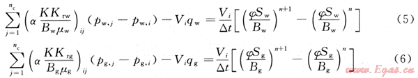 由滲流力學(xué)理論及質(zhì)量守恒定律,氣水兩相滲流數(shù)學(xué)模型的偏微分形式為: