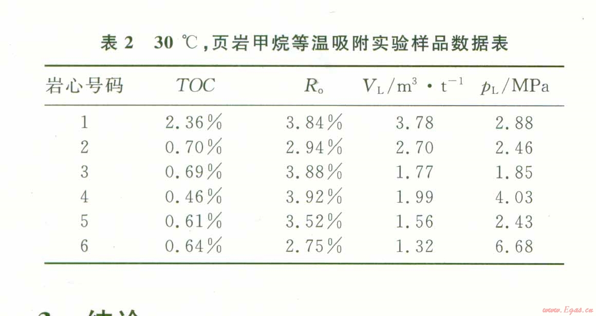 2.2頁巖等溫吸附特征
