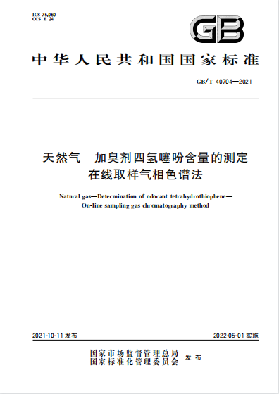 天然氣加臭劑四氫噻吩含量的測(cè)定 在線取樣氣相色譜法GB∕T 40704-2021